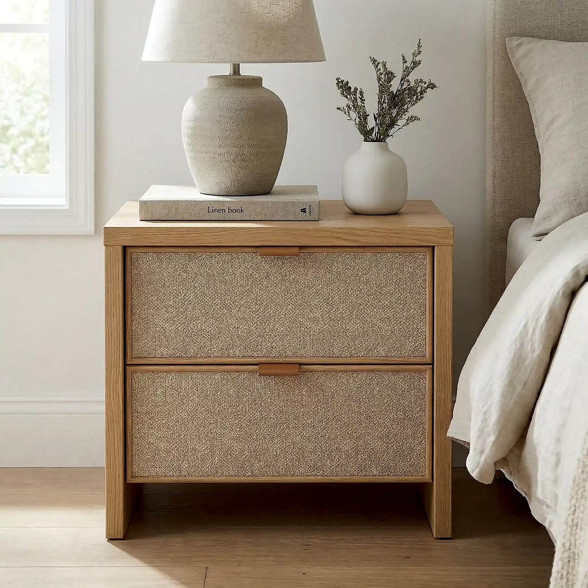 Ambience Hazeranlı Ahşap Komodin, doğal malzeme estetiğini zarif ve zamansız tasarım çizgileriyle bir araya getiren özel bir yatak odası parçasıdır. Hazeran detayları ve dengeli formu sayesinde bulunduğu alana sıcak, şık ve karakterli bir hava kazandırırken, işlevsel yapısıyla günlük kullanımda konfor sağlar.
