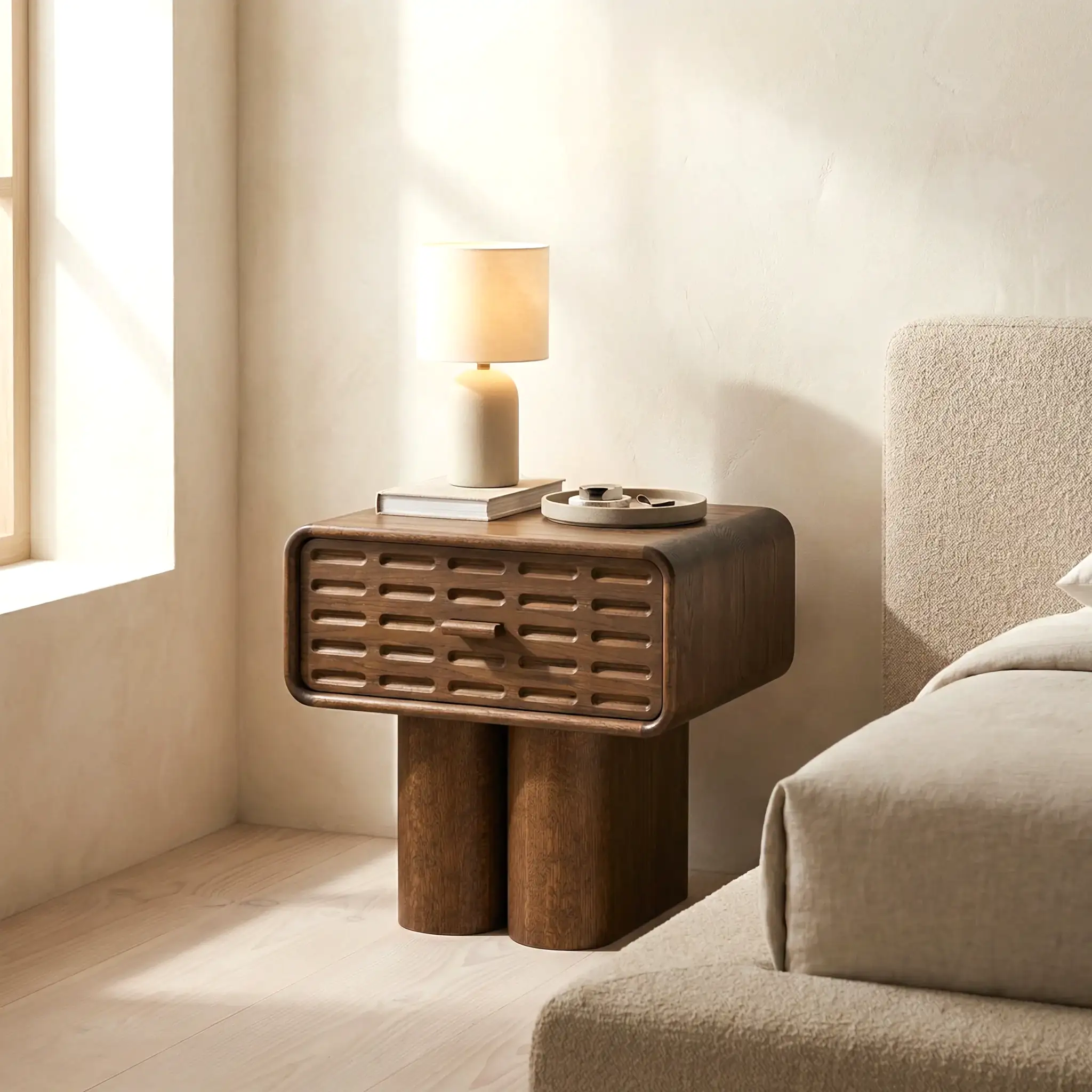 Andrew Ahşap Komodin, doğal malzeme estetiğini zarif ve zamansız tasarım çizgileriyle bir araya getiren özel bir yatak odası parçasıdır. Dengeli formu sayesinde bulunduğu alana sıcak, şık ve karakterli bir hava kazandırırken, işlevsel yapısıyla günlük kullanımda konfor sağlar.
