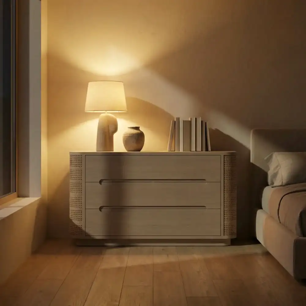 Athena Hazeranlı Ahşap Şifonyer, doğal malzeme estetiğini zamansız ve dengeli tasarım çizgileriyle bir araya getiren özel bir mobilya parçasıdır. Doğal ahşap görünümü ve güçlü formu sayesinde bulunduğu alana sıcak, şık ve karakterli bir hava kazandırırken, işlevsel yapısıyla günlük kullanımda konfor sağlar.