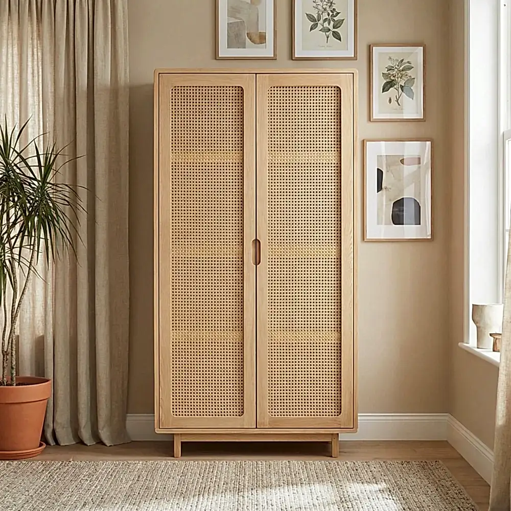 June Hazeranlı Ahşap Gardırop, doğal malzeme estetiğini zarif tasarım anlayışıyla buluşturan özel bir depolama çözümüdür. Şık ve dengeli tasarımı, bulunduğu yaşam alanına sıcak, doğal ve karakterli bir görünüm kazandırırken; işlevsel yapısı sayesinde günlük kullanımda konfor sunar.