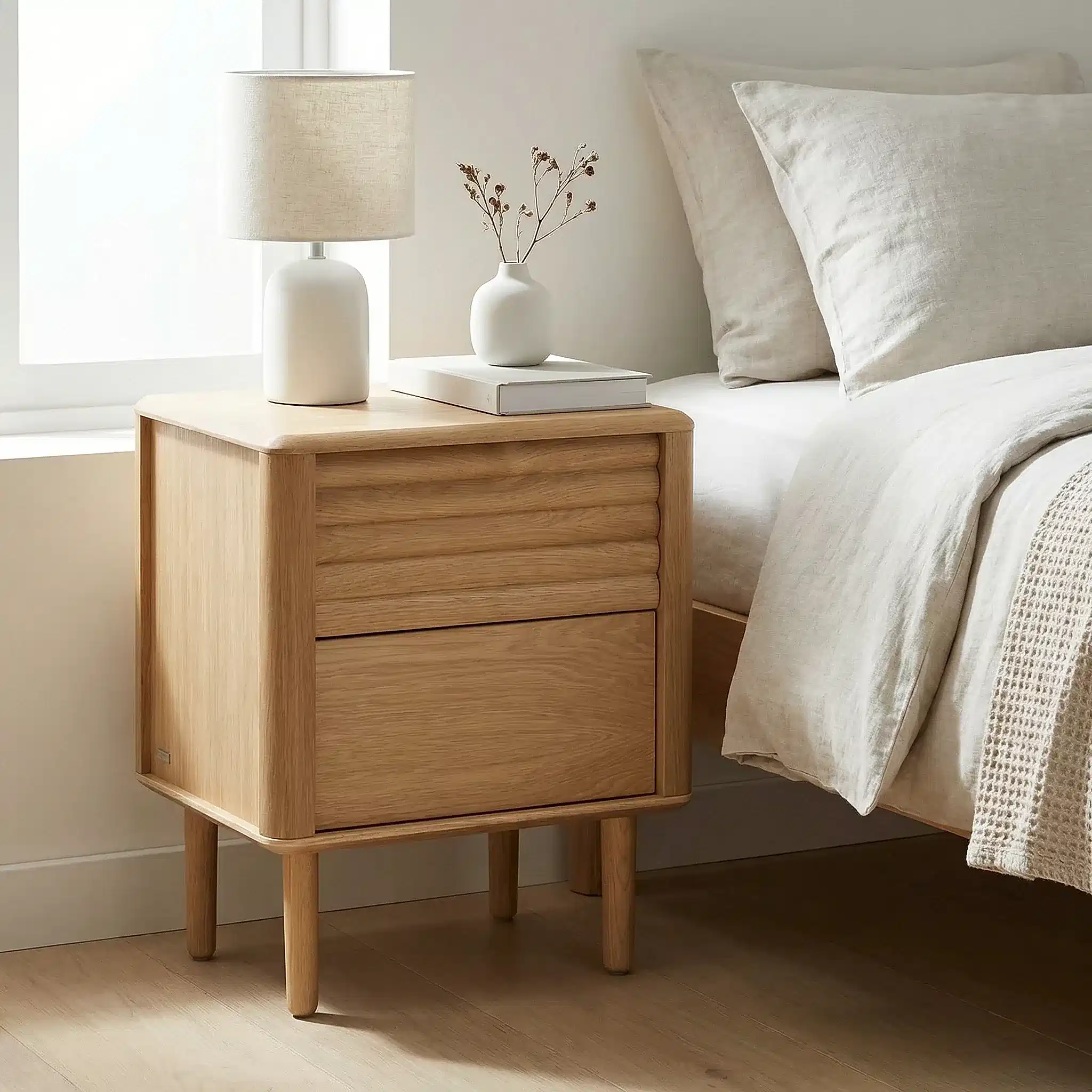 Manilva Ahşap Komodin, doğal malzeme estetiğini zarif ve zamansız tasarım çizgileriyle bir araya getiren özel bir yatak odası parçasıdır. Dengeli formu sayesinde bulunduğu alana sıcak, şık ve karakterli bir hava kazandırırken, işlevsel yapısıyla günlük kullanımda konfor sağlar.