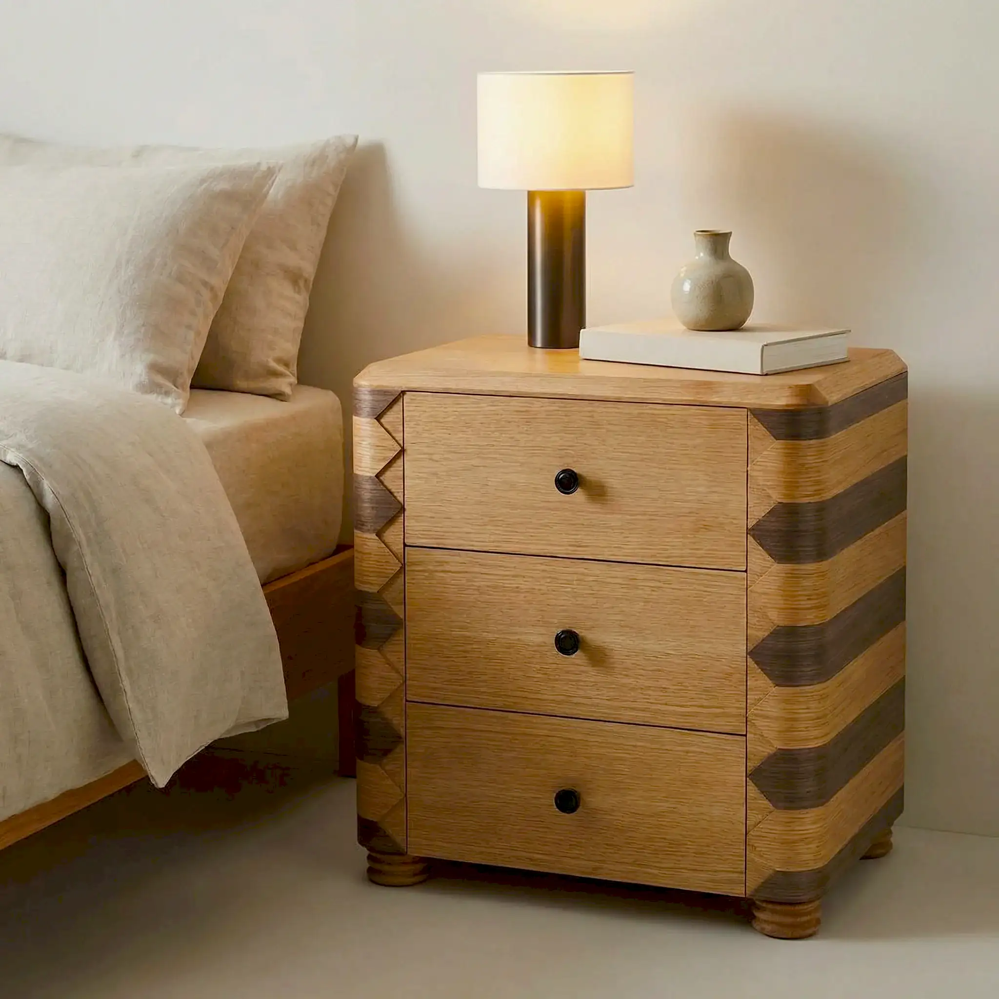 Wardell Ahşap Komodin, doğal malzeme estetiğini zarif ve zamansız tasarım çizgileriyle bir araya getiren özel bir yatak odası parçasıdır. Dengeli formu sayesinde bulunduğu alana sıcak, şık ve karakterli bir hava kazandırırken, işlevsel yapısıyla günlük kullanımda konfor sağlar.